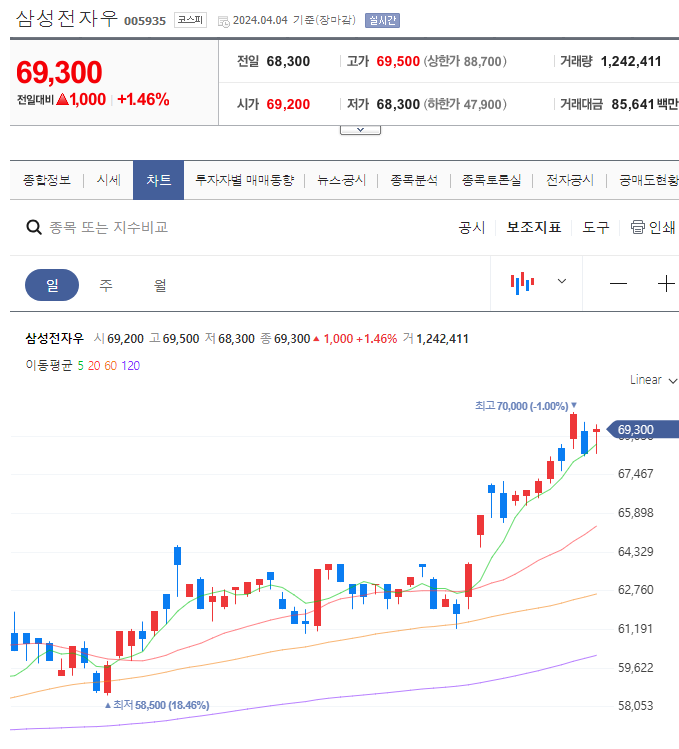 - 올해 초 저PBR 관련주와 관련하여 정부의 정책 발표 이후 외국인이 올해 초부터 삼성전자를 끊임없이 사들이기 시작하면서 상승세를 이어가고 있습니다.